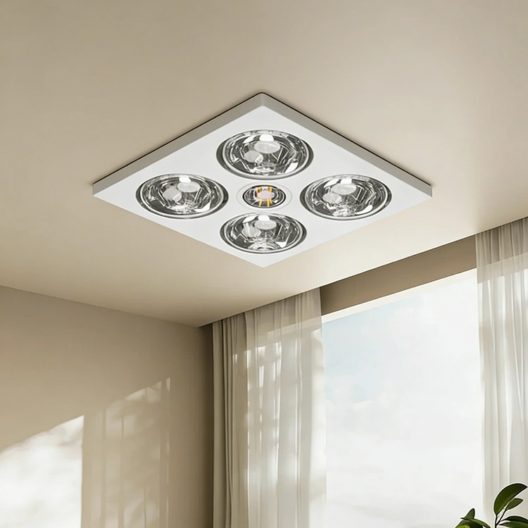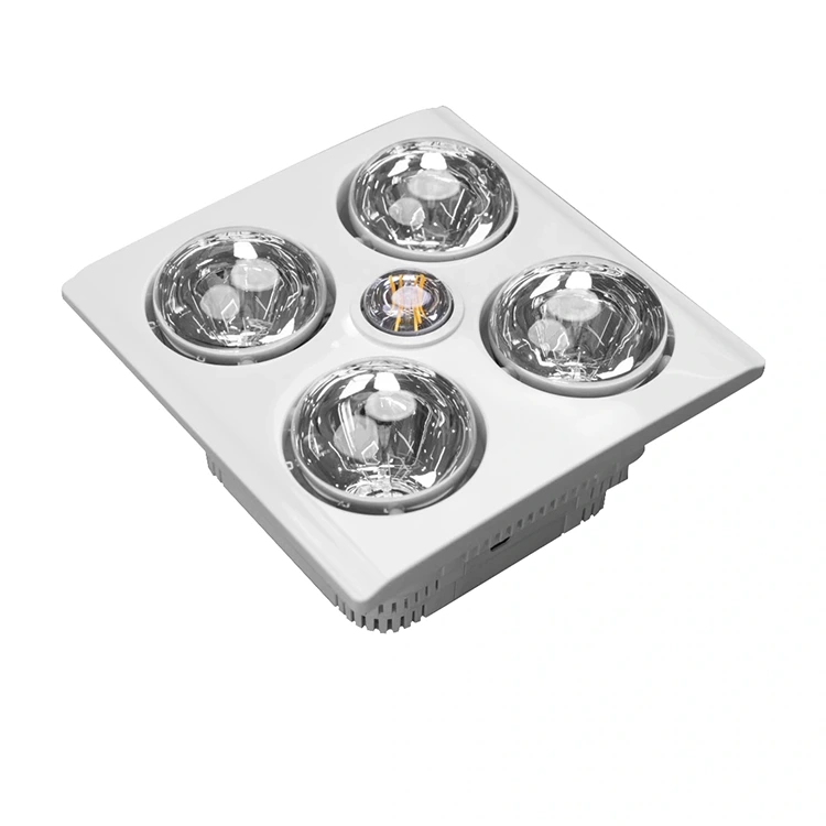 4つの加熱ランプを備えたこの赤外線ヒーターは、統合機能を備えた非常にコスト効率の高いヒーターです。暖房、照明、換気という 3 つの主要な機能を組み合わせています。 1 つのユニットでバスルームの必須のニーズをすべて満たし、スペースと設置コストの両方を節約します。通常、ファン式浴室暖房機よりも手頃な価格です。